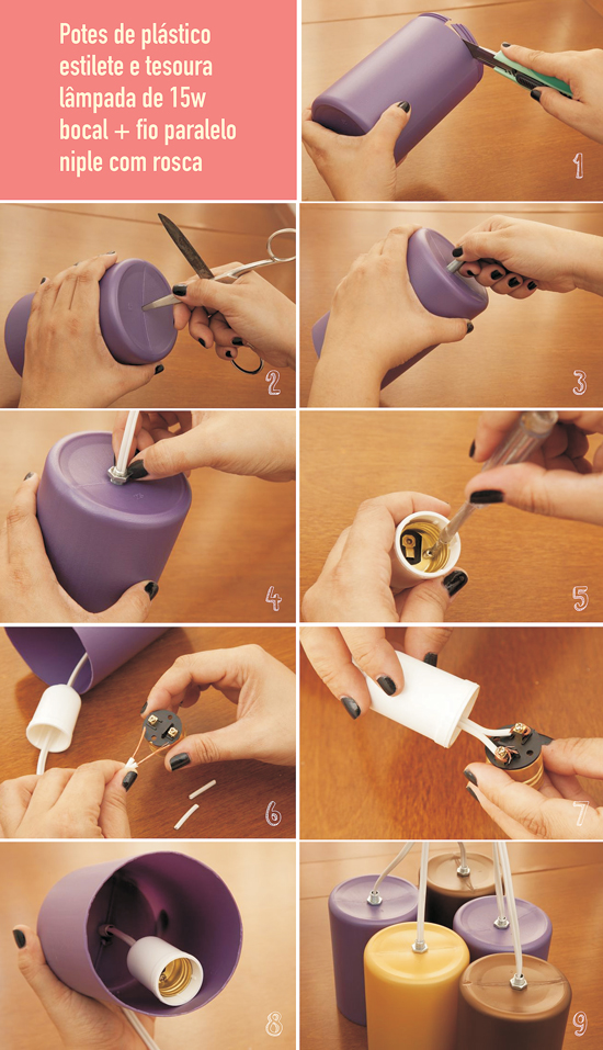 • Tintas esmalte brilhante nas cores laranja e roxa